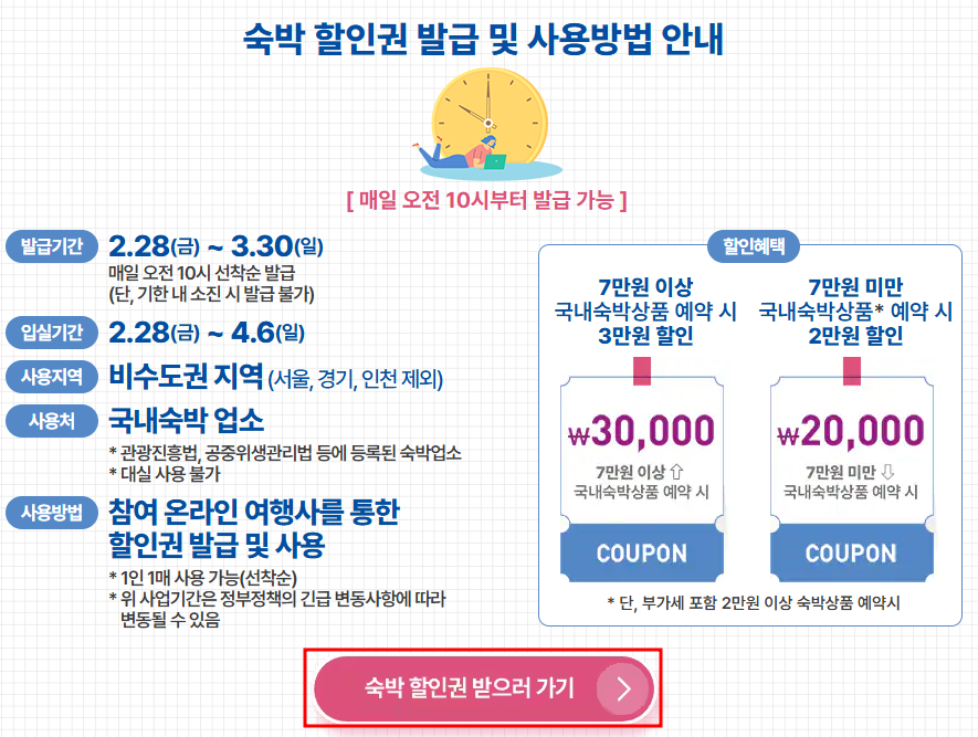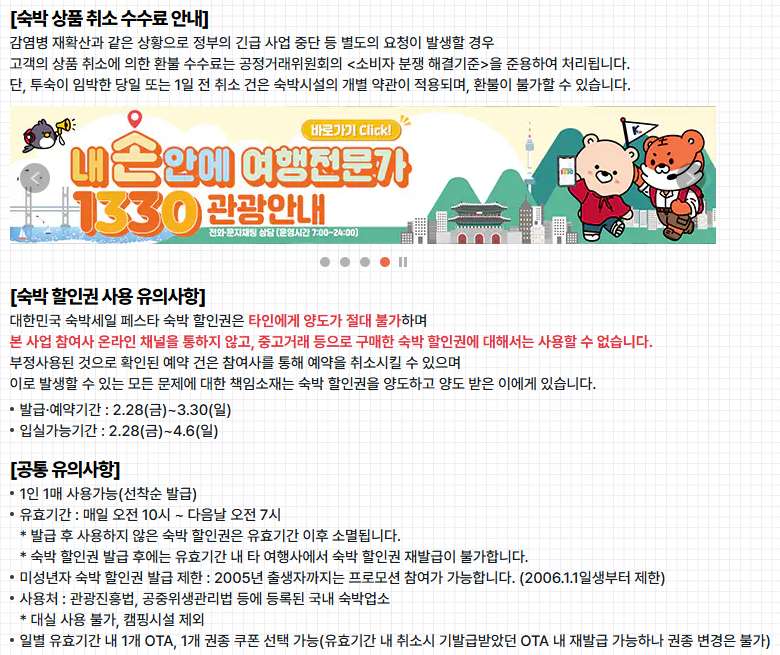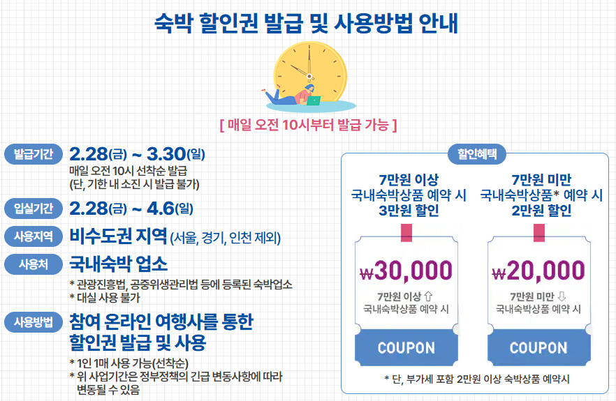 - 7만 원 이상 숙박 상품: 3만 원 할인