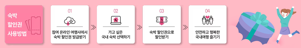 이러한 할인은 호텔, 콘도, 리조트, 펜션 등 다양한 국내 숙박시설에 적용되며, 미등록 숙박시설과 대실 이용에는 적용되지 않습니다.
