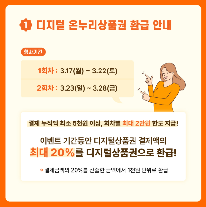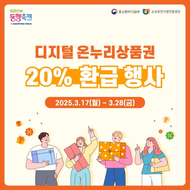 - 디지털 온누리상품권 충전 시 10% 할인 & 결제액 20% 추가 환급